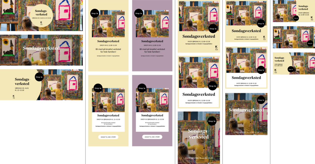 Maler for SoMe fins i formatene Facebook arrangement, story/infoskjerm, 4:5, kvadrat og landskap.